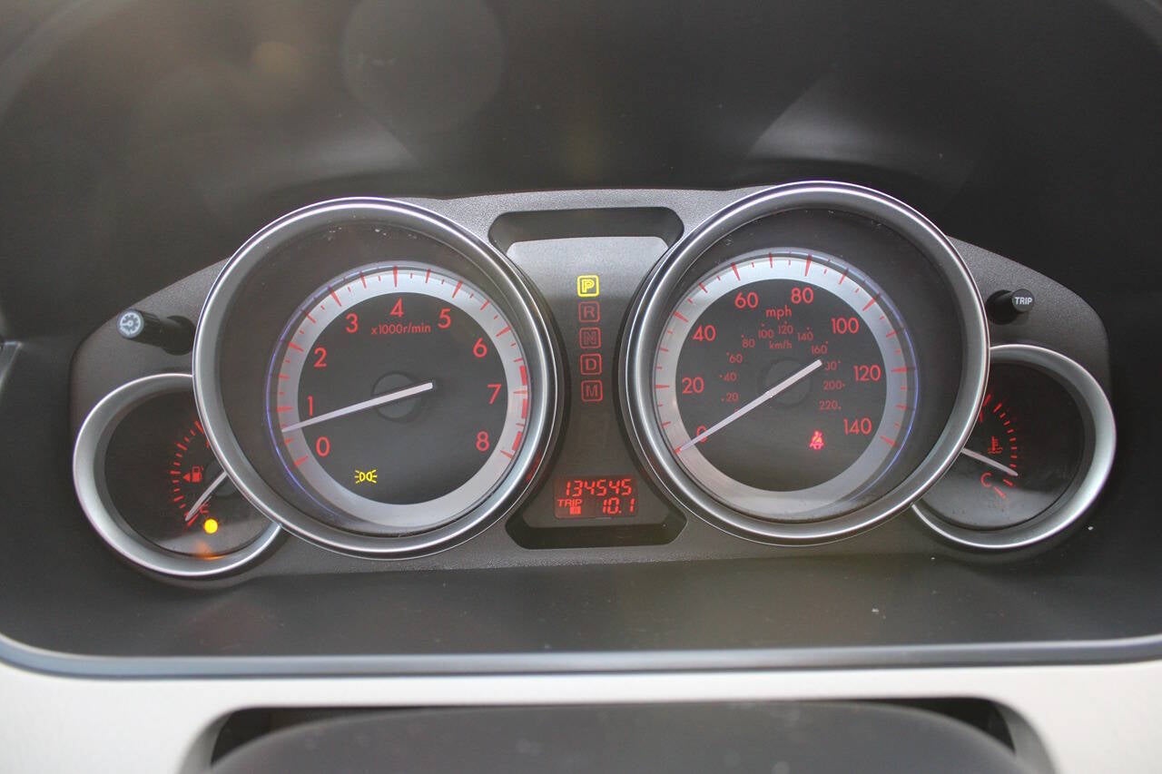 Introducing the sleek and powerful 2012 Mazda CX-9 Grand Touring, the perfect blend of style and performance. This SUV is equipped with a 3.7L V6 engine, delivering an impressive 273 horsepower and 270 ft. lbs. of torque. Paired with a 6-speed shiftable automatic transmission, this vehicle offers a smooth and responsive driving experience.